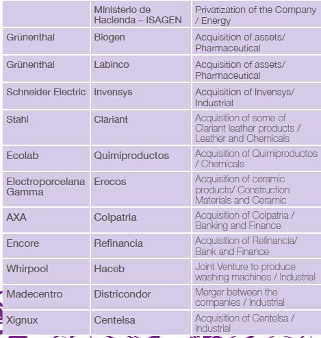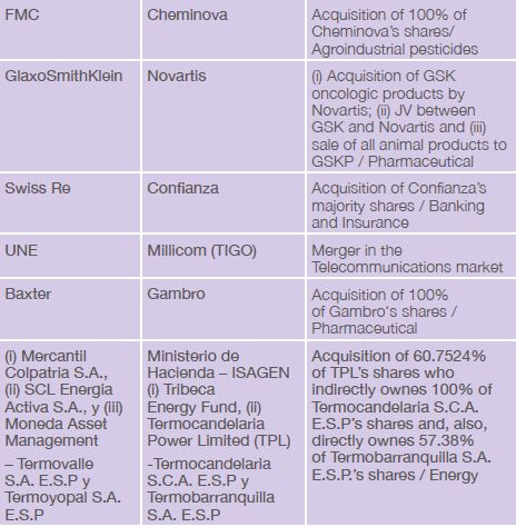 (i) Superintendence of Finance of Colombia ("SFC") reviews mergers which take place between two or more companies or institutions supervised by the SFC.