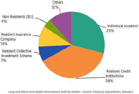Turning on government's funding markets, Moody's notes that the funding difficulties evident in the international financial markets over the last few years have been absent from Maltese financial markets, where all primary and secondary-market trade in government securities takes place: "although the secondary market is very much underdeveloped, this is a reflection of the primary purchasers' propensity to buy and hold these securities.