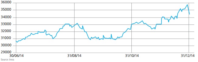 The ASX 200 AREIT Accumulation Index returned 12.70% over the six months ending 31 December 2014.