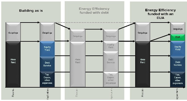 - the potential drag on equity returns that may result if the costs of the EUA exceed the amount that can be passed through to tenants (but bearing in mind that this drag will almost certainly be less than under traditional debt or equity financing);