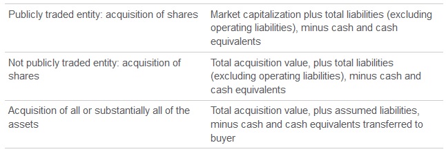 How enterprise value will be determined will depend on the nature of the transaction: