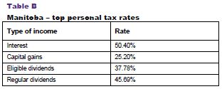 Table B illustrates the combined 2016 federal-provincial top marginal rate of tax on various types of income: