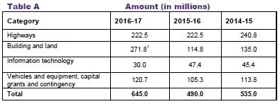 Total capital expenditures are forecast at $645 million, compared to $490 million in 2015-16 and $535 million in 2014-2015. The investments will be in the following four categories: