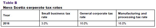 Nova Scotia's corporate tax rates for 2016 are summarized in Table B below: