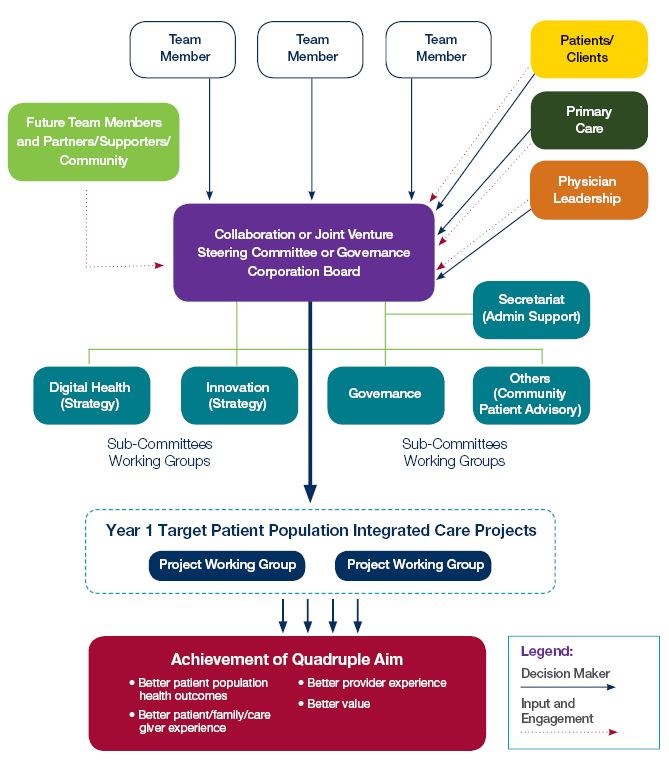 - Some teams are beginning with fewer participants, particularly where the providers have a history of working together. They will more easily design the initial decision-making framework but it will be important to ensure the team and its structure facilitates expansion through additional participants as the scope of integration activities expands.