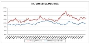 Of the 121 constituents in the index, approximately 50% were up and 50% were down on the year. Some were up over 100% including Espial Group, 01 Communique Laboratory, Firan Technology Group Corporation, and TIO Networks. Enablence Technologies and Pivot Technology Solutions were up over 300%(2). Of course there were laggards as well, DragonWave, GuestLogix, Mood Media, SENSIO Technologies, Contagious Gaming, and LeoNovus were all down over 75%. TMT sector valuation multiples (enterprise value divided by EBITDA)(3) also saw a rise and then a decline, ending the ear at 12.4x, slightly lower than 12.9x at the start of the year. The strongest subsector for the year was the IT Consulting & Services subsector, where companies such as Pivot Technology Solutions contributed to an average subsector LTM EBITDA multiple of 14.3x. The Media sector lagged other sectors, trading at 10.6 times LTM EBITDA.
