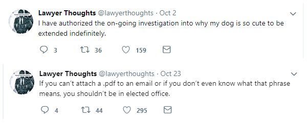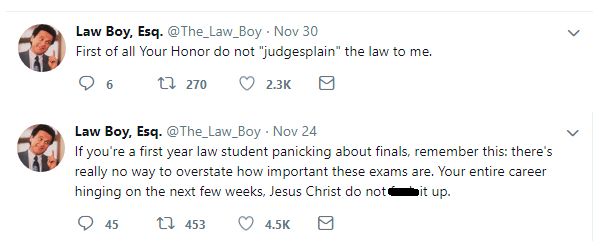 For your convenience and scrolling pleasure, here are (in my opinion) the top 5 humorous law-related twitter accounts, and a selection of their best tweets.