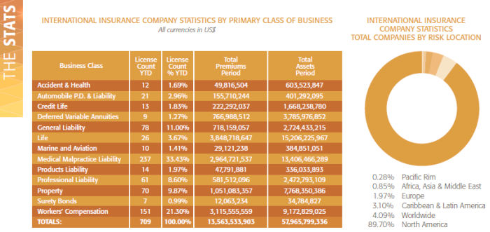 These are enormous figures especially for an industry that employs fewer than 300 people in Cayman. The Cayman Islands remains the second-largest captive domicile in the world after Bermuda.