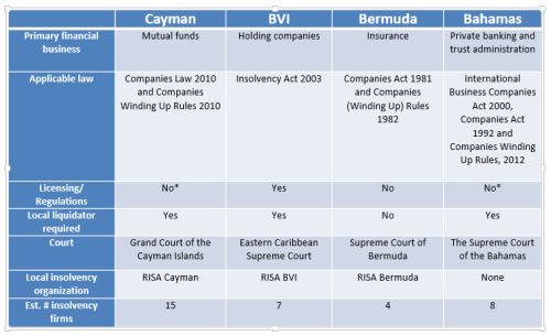 Below is a comparative analysis of the Caribbean offshore centers and the insolvency legislation in those jurisdictions