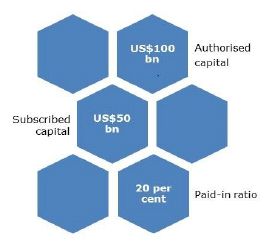 According to the MOU, the authorised capital of the AIIB will be US$100bn and the initial subscribed capital is expected to be US$50bn. The paid-in ratio is expected to be 20 per cent, 10 with capital paid by members in instalments. The Ministry of Finance has indicated that it is likely the AIIB will increase its capital in the future in accordance with business needs. 11