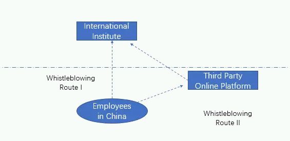 Under Whistleblowing Route I, the employees in China will disclose information directly to certain person or authority in the international institute directly. Under Whistleblowing Route II, the international institute will enter into an agreement with the third party online platform, who will provide whistleblowing related services. In order to comply with Chinese laws, certain issues should be considered such as critical information infrastructure, personal information and cross-boarder transfer of personal data.
