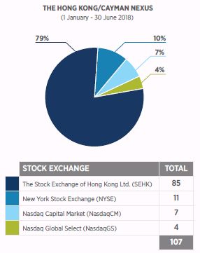 Deal flow in our jurisdictions ran parallel with activity taking place globally. The most active exchange was the Stock Exchange of Hong Kong, which represented 76% of the listings during this period, followed by the major exchanges in the US and one listing on the Bucharest Stock Exchange - as shown in the graphic on the right.