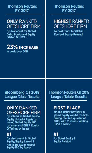 There is a positive outlook for H2 2018 as a result of strong equity markets, high corporate earnings and increasing investor confidence. The pipeline in markets such as the Americas and Asia-Pacific looks healthy, with IPO activity in Brazil and Mexico remaining strong, and an appetite in Asia for small-cap listings and IPOs from high-tech companies. EMEIA is also displaying a positive outlook, notably through regions such as India and the Middle East.
