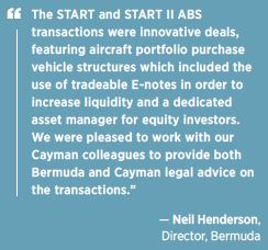 Acted for the issuers, START II Ltd and START Holding II Ltd, in respect of an asset backed securitisation comprising three tranches of notes secured on a portfolio of 20 in-production aircraft on lease to 13 global airlines in 11 countries, with an appraised value of approximately US$597 million. Conyers also provided Cayman law advice in respect of the listing of the Notes issued by START II Ltd. and the equity certificates issued by START Holding II Ltd on the Cayman Stock Exchange (Bermuda: Neil Henderson, Director, and Angela Atherden, Counsel. Cayman Islands: Matthew Stocker, Partner)