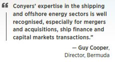 The shipping and offshore energy sectors remain important for Conyers' corporate practice, particularly the Norwegian, North American and Asian markets. Transactions range from capital markets and M&A deals to financing and vessel registrations.