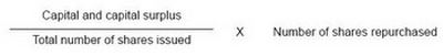 (d) Under the current law if a company repurchases treasury shares and the repurchase price exceeds the capital and capital surplus attributable to the repurchased shares, the excess is deemed to be a dividend. The capital attributable to the repurchased shares is calculated using the following formula:
