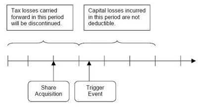 The 2006 tax reform proposals contain a measure to disincentivise the acquisition of loss-making companies. It is proposed that if: (i) a "certain shareholder" acquires more than 50% of the shares in a loss-making company; and (ii) the loss-making company ceases to operate the business it operates at the time of the acquisition within five years of the acquisition and it starts a new business of a materially larger size within five years, or "certain other conditions" are met (the "trigger events"), tax losses that are carried forward in the fiscal years prior to the "trigger events" will be discontinued. Furthermore, any capital losses incurred within three years from the beginning of the year of any trigger event will not be tax deductible.