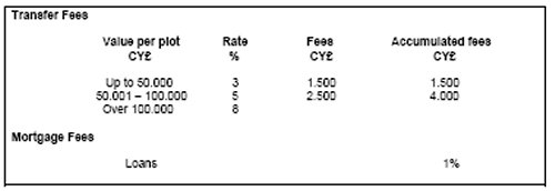 The fees charged by the Land Registry department for transfers of immovable property are as follows: