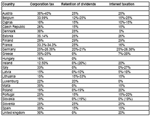 18. If investment is less than EUR200,000 dividends are subject to 15% withholding tax which is reduced to 10% if the recipient company controls 25% or more of the paying company.