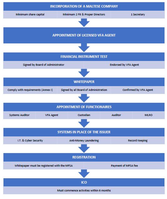 An Issuer wishing to offer VFA to the public (i.e. ICO) in or from Malta shall prepare the following documents, which will be submitted to the MFSA through its VFA Agent: