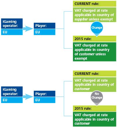 As of 1 January 2015 iGaming services supplied to private consumers (private individuals and non-taxable persons) in the EU will be treated as supplied in the Member State of the customer.