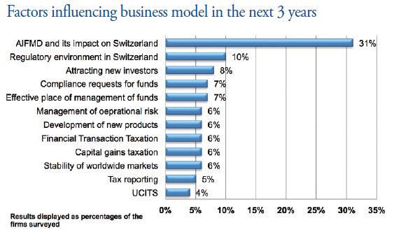 The Regulatory landscape is changing and as the figures from a recent PWC market survey2 show, Swiss managers feel that their business activities will be heavily influenced by regulation over the next 3 years.