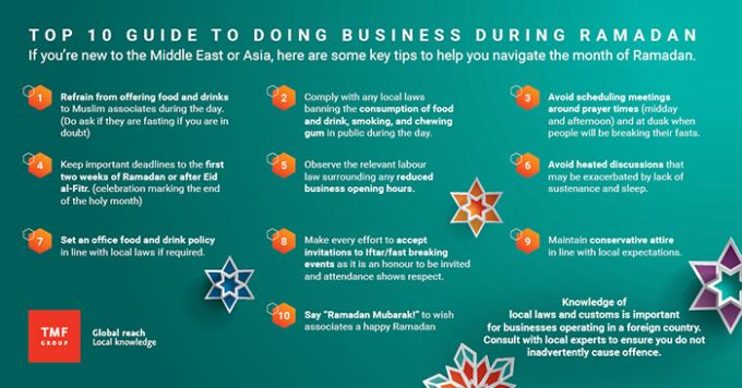 Of course Muslims are celebrating Ramadan all over the world at this time, but there are some Asia Pacific countries in which TMF Group operates, where change to business practise is also common.