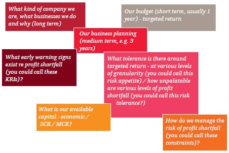 - have a joined up view of risk profile, risk tolerance limits and business strategy.