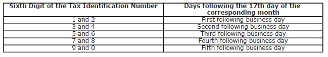 Any person that is obligated to file notices for having performed sensitive activities (actividades vulnerables) during the year 2014, or reports in zeros if no sensitive activities subject to reporting were performed during such period, shall have, as of February 17, 2014 and onward, additional days to file said notices and reports depending on the sixth digit of such person's or company's tax identification number (RFC), in accordance to the following agenda: