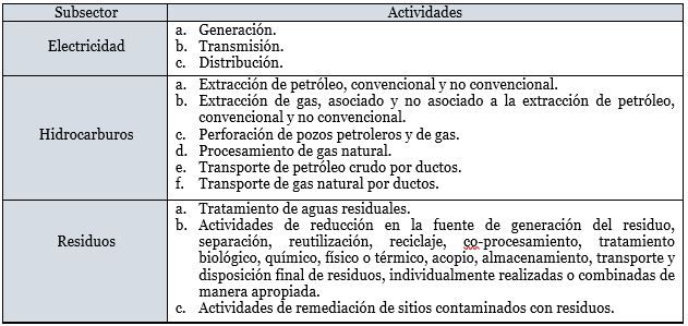 Los sujetos obligados a emitir el Reporte respecto de los sectores de energía y residuos son todos aquellos que realicen alguna de las actividades siguientes, siempre y cuando como se menciona anteriormente, las emisiones directas e indirectas de sus instalaciones fijas y/o móviles excedan las 25,000 toneladas de CO₂ equivalente: