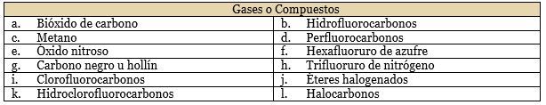 Los gases o compuestos de efecto invernadero que deberán reportarse, además de aquellos contenidos en el "Acuerdo que establece los gases o compuestos de efecto invernadero que se agrupan para efectos de reporte de emisiones, así como sus potenciales de calentamiento", publicado en el DOF el 14 de agosto de 2015, son: