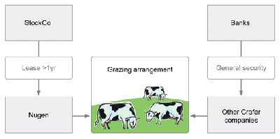 Nugen Farms Limited (Nugen), a company related to the Crafar group, had leased around 5,600 cows from rural financier StockCo Limited (StockCo) under a long-term lease and was grazing the livestock on land owned by other Crafar companies. Those companies had granted an 'all assets' security to the banks (the banks) which funded the Crafar group business, and which ultimately appointed the receivers.