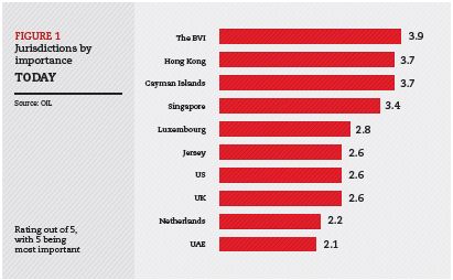 The rise of super jurisdictions, defined as 'an originating geographical source of clients, a market where other clients go to conduct business and the jurisdiction itself of the entities that clients use', was another trend that emerged from this year's research. These super jurisdictions are considered contenders for usurping traditional offshore centres, such as the BVI, because they offer considerable benefits to clients.