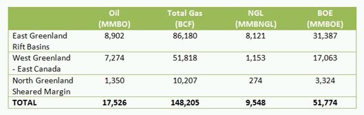 Greenland's estimated oil and gas potential