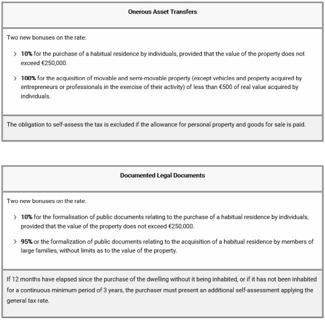 - A new bonus is established for both inter vivos and mortis causa acquisitions for transfers between 2nd and 3rd degree consanguineous collateral (siblings, uncles and nephews) of 15% and 10% respectively.