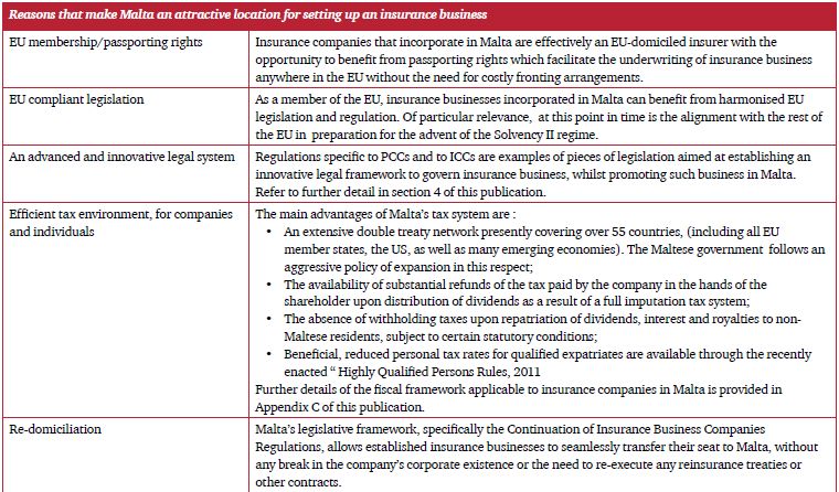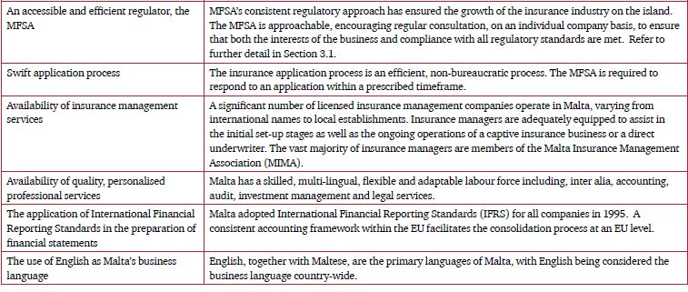 The table below summarises what we perceive to be the main benefits of setting up insurance business in Malta.