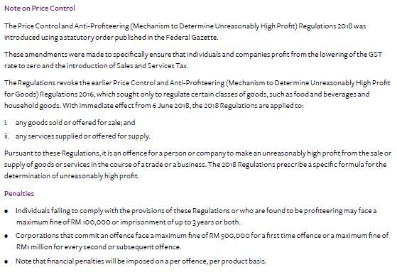- how goods and services should be priced given the 5 June 2018 changes to the Price Control and Anti-Profiteering (Mechanism to Determine Unreasonably High Profit) Regulations 2018.