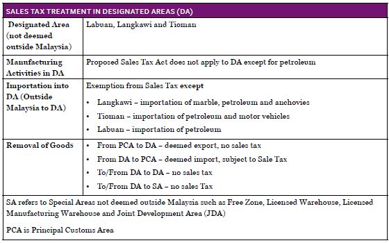 Labuan, Langkawi and Tioman will be designated as Designated Areas (DA) for SST purposes. Free Zones (FZ), Licensed Warehouses (LW), Licensed Manufacturing Warehouses (LMW) and Joint Development Areas (JDA) are designated Special Areas (SA). [See Tables on pages 4 - 5.]