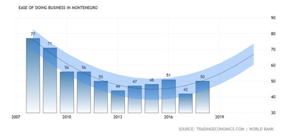 According to the latest World Bank 2018 annual ratings, Montenegro is ranked 50th among 190 economies in the ease of doing business ratings.