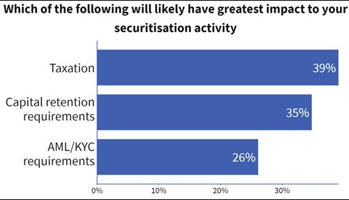 Similarly, poll participants were torn but voted taxation as most likely to impact securitisation activity.