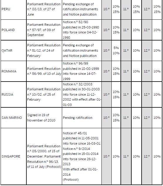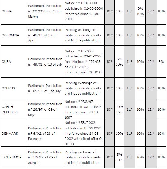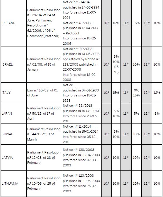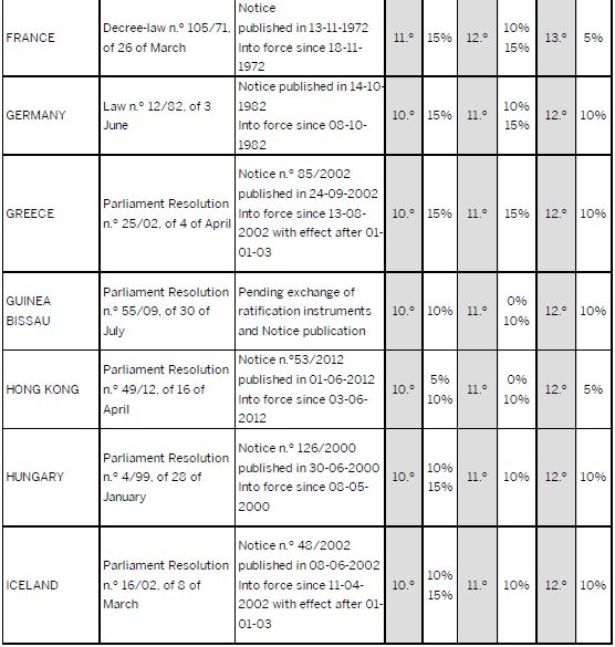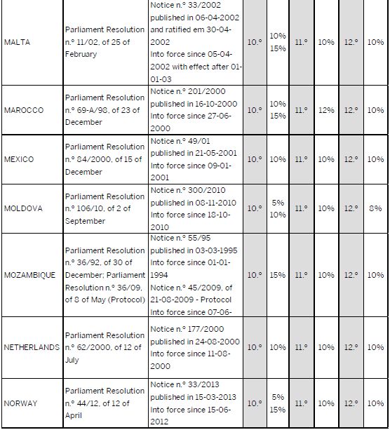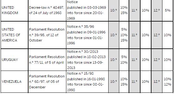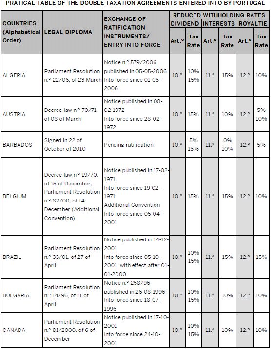 Please find below an up-to-date list of all the Double Tax Treaties entered into by Portugal.