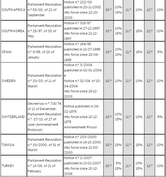 The new agreements entered into with said countries are expected to contribute to increasing the trade on a bilateral basis and to a fairer allocation of the tax revenues.