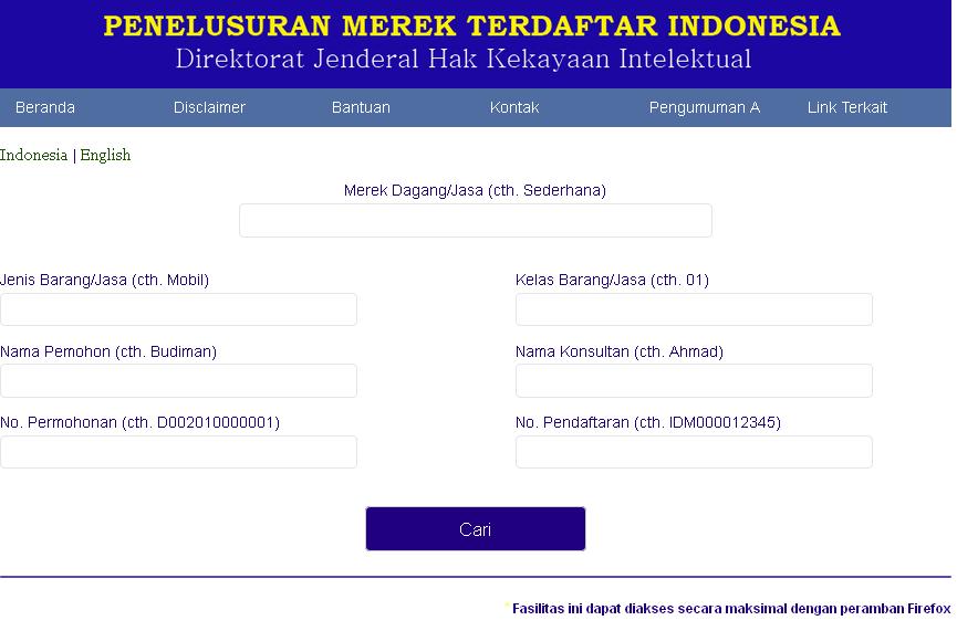 Keterangan: Tampilan database merek ini akan optimal dibuka dengan menggunakan browser Mozilla Firefox.