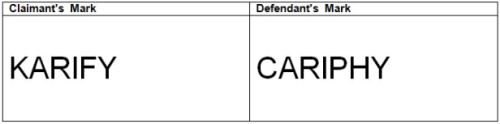 The court considered that both marks are very similar in a conceptual and aural way. The elements 'Kar' and 'Car' both refer to the word 'Healthcare'. The argument put forward by Cariphy that the relevant public is not likely to distinguish such element was dismissed by the court. The fact that both marks are visually less similar was not enough to overcome the other similarities of the marks. Furthermore, both marks cover software and both products are very similar. Both software solutions are aimed at the same users (physiotherapists) and have the same function (to help health-care professionals improve individual supervision of their clients/patients).