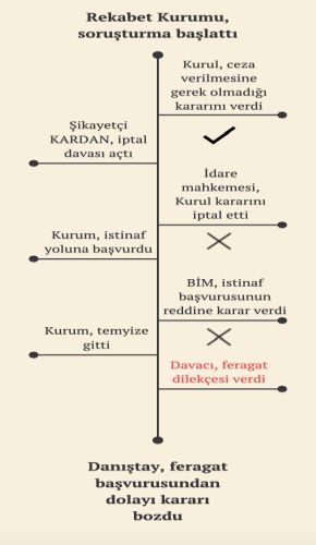 Dava dosyası, Rekabet Kurumu tarafından temyiz başvurusu yapıldıktan sonra Danıştay 13.Daire'de karar verilmek üzere beklerken, davacı vekilince 07.05.2019 gününde Danıştay'a davadan feragat dilekçesi verilmiştir. Anılan feragat başvurusu üzerine Danıştay 13.Dairesi, hukukun temel ilkelerinden bahisle davacının feragat başvurusundan dolayı kararı bozarak dava dosyasının BİM 8.İdari Dava Dairesine feragat başvurusu hakkında karar verilmesi için gönderilmesine karar vermiştir.5