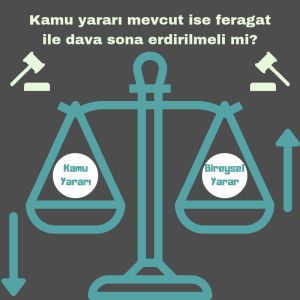 Gerçekten örnek vermek gerekirse, terfii ile ilgili iptal davası açan bir memurun bu davadan feragat etmesi kendisi dışında bir başka kişinin menfaatini ilgilendirmeyecektir. Bu sebeple, bu durumda sadece bireysel bir yarar söz konusu olduğundan bu davadan feragat eden memurun feragatinde tek taraflı olarak beyanını açıklaması yeterli olacak ve yargı yerinin bunu bireysel yarar ölçütünden hareketle tartışmadan kabul etmesi gerecektir. Fakat (X) mahallesinde oturan aynı kişi bu mahalleye malik olduğu binanın komşu parseline yapılmak istenilen çocuk parkı ile ilgili karara karşı açtığı davada yapacağı feragat başvurusu sonucunda verilecek karar, kendisi dışında tüm komşularını da, yani geneli etkilediği için kamu yararı söz konusu olacaktır. Davayı açan kişinin bu yöndeki tek taraflı feragat iradesi sonuç doğurmayacak ve yargı yerinin feragat talebini reddetmesi gerekecektir.