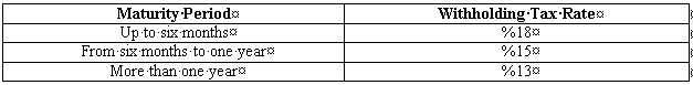 - Interest paid for Turkish currency deposits and premiums paid for the Turkish currency participation accounts will be subject to below withholding tax rates;