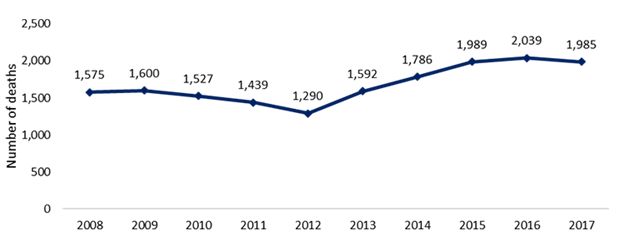 Figure 1. Deaths from opioids, England and Wales - 2008-2017
