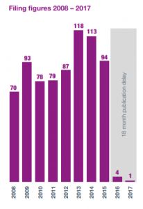 There is a significant lag between a patent being filed, and it showing on any patent register, so some of the decline we have seen will be attributable to that lag. Nevertheless, the lag is unlikely to account for all of this decline, and if this trend continues into coming years it should serve to focus minds further on the challenge of AMR.
