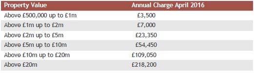The ATED charge initially applied to UK residential properties held in corporate and similar structures if worth more than £2m in April 2012, or at acquisition if later. The ATED charge was extended to such properties worth more than £1m from April 2015, and those worth more than £500,000 from April 2016. Note that even for the new ATED thresholds the valuation is also that at 1 April 2012, or at acquisition if later.